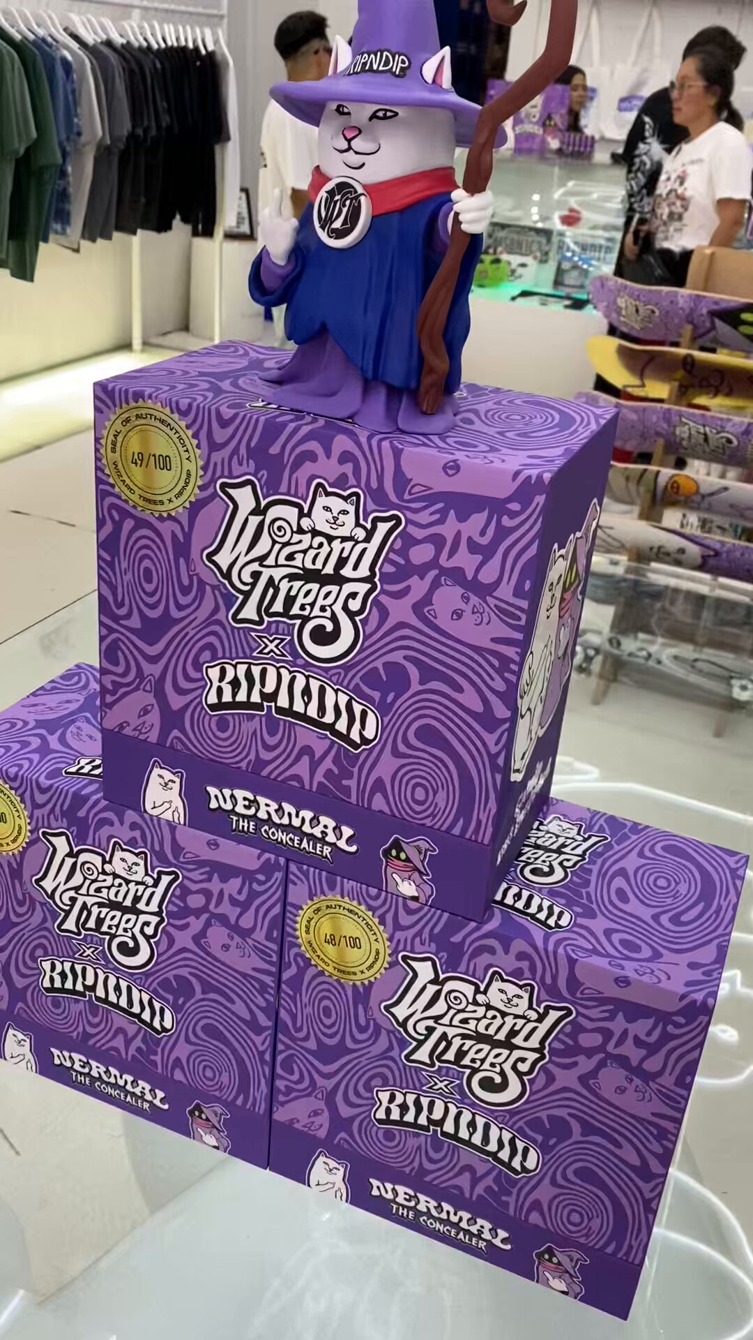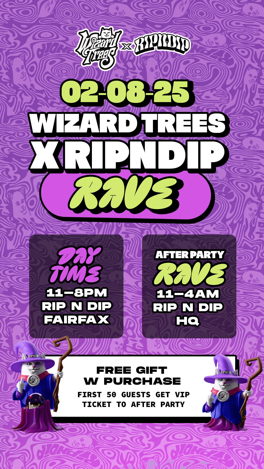 Wizard Trees teamed up with streetwear powerhouse Ripndip for an exclusive, limited-edition drop that brought cannabis culture and art toys together in a way the industry hadn’t seen before. The centerpiece of the collaboration was a 3D collectible Nermal Cat figure, each one individually numbered from 1–100 and packaged with a Certificate of Authenticity and an eighth of Wizard Trees flower tucked inside, an instant collector’s piece that blurred the line between lifestyle, design, and premium cannabis.To celebrate the release, Wizard Trees and Ripndip hosted a private launch party at Ripndip’s Los Angeles headquarters, where Gordo made a surprise appearance and Ocon, founder of Ripndip, kept the energy high with a live DJ set. The collaboration extended beyond the party, Wizard Trees took over the Ripndip LA flagship store for a full week, transforming the space with a full vinyl wrap installation, immersive visuals, and exclusive merch drops.The result was a one-of-a-kind cultural moment that merged two creative worlds, high fashion streetwear and high-end cannabis, cementing Wizard Trees’ reputation for pushing boundaries in design, experience, and brand storytelling.